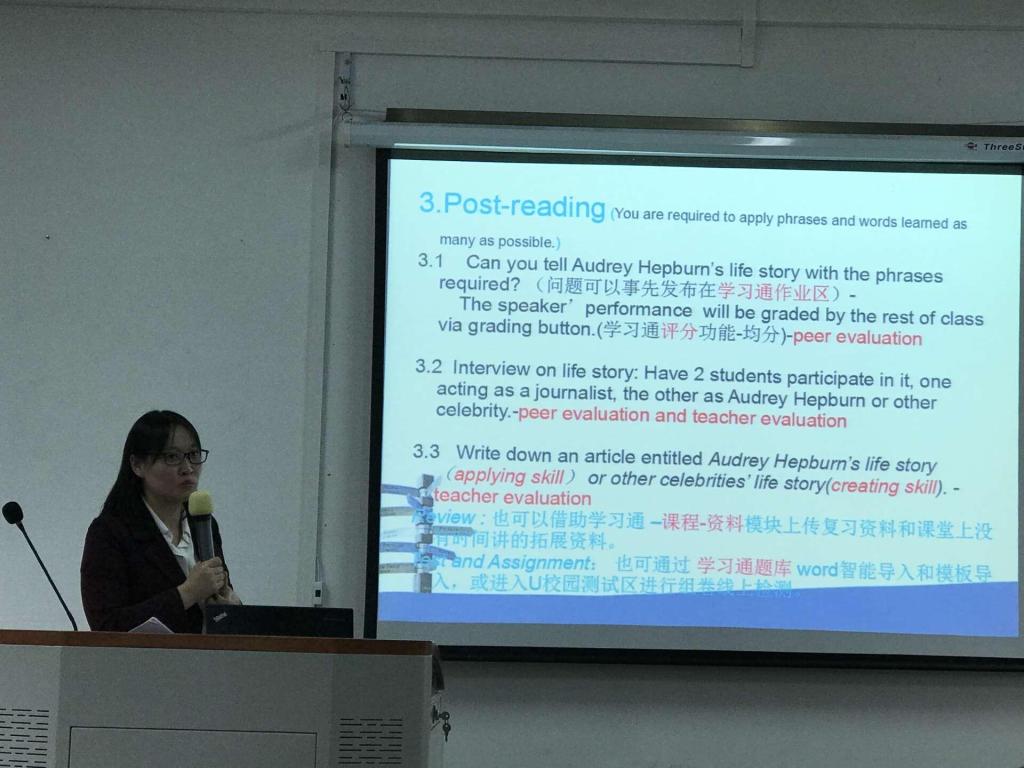 为促进教师教学交流、提高外语教学水平,外国语学院于1017日下午在04-303教室开展了十月份课堂教学观摩课活动。本次教学观摩活动由外国语学院副院长罗绮伦主持,主讲教师为大英第二教研室柯细香老师,学院全体教师和离退休教师参与观摩并进行了评课交流。