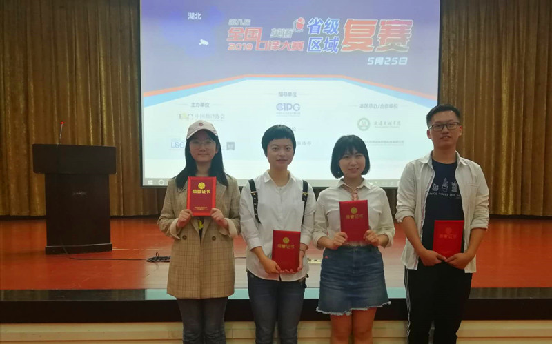 5月25日,由中国翻译协会主办,东湖学院承办的第八届全国口译大赛(英语)湖北赛区复/决赛在江城武汉拉开帷幕,来自武汉大学、华中科技大学等湖北30所高校的110名研究生、本科生参加了此次比赛。在外国语学院曹婷老师指导下,我校选派的四名选手喜获佳绩,曹婷老师荣获“优秀指导教师”奖。