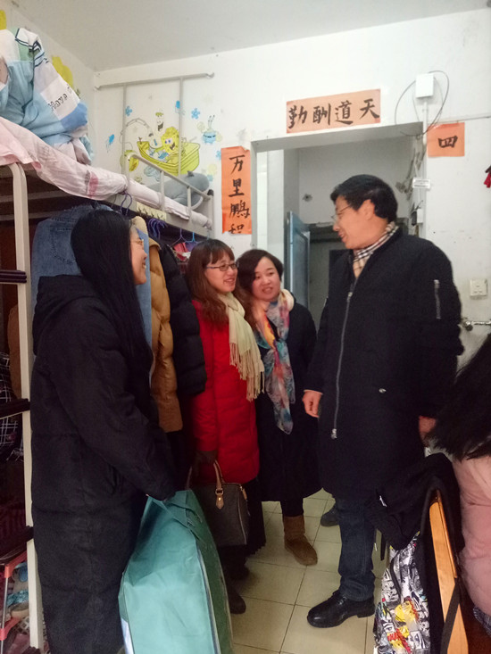 1月3日下午,外国语学院党委书记胡中原、院长谭燕保、副书记王芳等一行来到学院学生寝室,为家庭经济困难学生送上冬日祝福,让学生们感受到学院大家庭的温暖。
