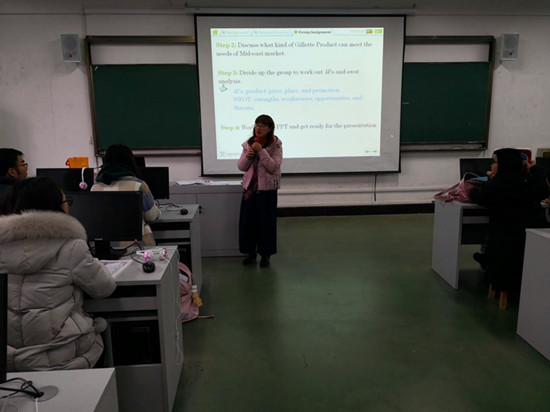 12月6日下午,学院在04-406教室开展了课堂教学系列观摩课活动。外国语学院院长谭燕保教授、英语系主任陈韵如以及英语系全体教师参加了此次活动。学院英语系副主任、商务英语专业负责人彭姿老师担任此次观摩课主讲老师。