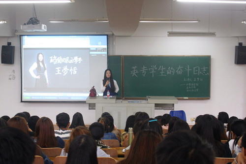 11月29日上午,外国语学院于07-T102举办就业精品活动——“就业面试经验”师生交流大会。会议主讲人为我院2010级优秀毕业生王梦恬。毕业生辅导员卫周瑶出席本次报告会。同时,参与本次活动的还有外国语学院全体大一、大二学生。