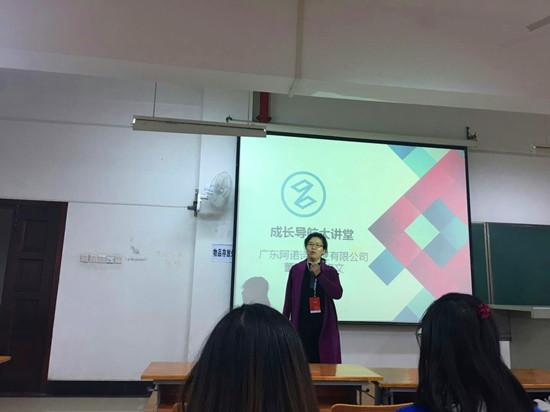 广东阿诺诗厨卫有限公司董事长、学院02级校友梁青云同学生们分享了自己的创业历程与创业感悟,并由衷的希望大家将外语作为一门工具,在学好外语的同时,坚持学习其他知识,不断提高自己的综合能力,做到全面发展。随后,梁青云同在座的同学展开近距离的交流互动,外国语11601班班长章超问及梁青云的梦想是什么,梁青云答道,她的梦想是通过自己的产品改变大家对中国产品价廉质低的看法,从而改变国外对中国制造的偏见。慷慨激昂的回答获得了大家阵阵掌声。而后,彭文涛,严霜两位校友也分别介绍了自己的创业史。最后,柯胜群副院长对此次成长导航大讲堂进行总结,并对在场的莘莘学子表达了殷切的希望。