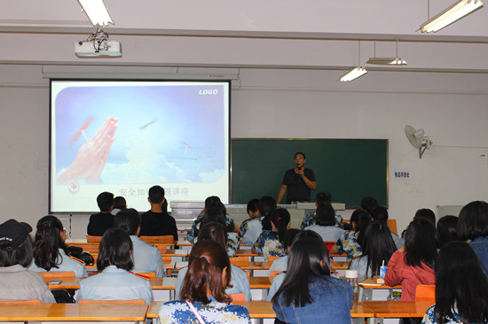9月29日下午,外国语学院在07-226召开2017级全体新生入学安全知识专题讲座。保卫处尚天飞科长、外国语学院2017级新生辅导员卫周瑶老师及学院全体2017级新生出席。