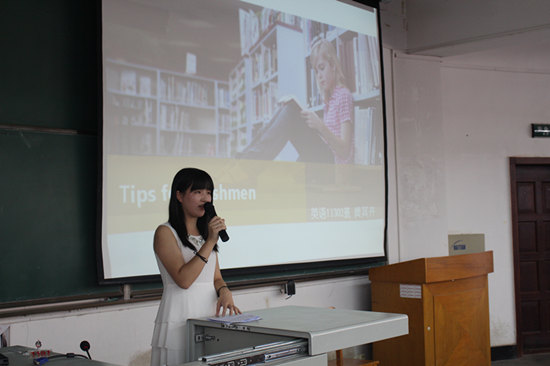 老生代表黄其卉同学代表全体老生热烈欢迎新生同学的到来,并向他们介绍自己的大学经历,传授经验,鼓励新生早日为自己制定学习和生活计划,积极参加志愿者活动,把握每一次提升自我的机会,丰富和充实大学生活。