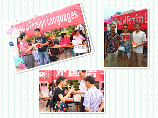 大学是新生们梦开始的地方,全新的大学生活,需要从新的起点扬帆起航。为了让新生提前适应学院具有专业学科特色的外语文化学习氛围,外国语学院首次推出“全英文迎新”,此项工作得到了学院领导、老师们的广泛认可,院长何畏教授、分党委书记陈利民教授领衔2015级新生导师以及学院英语志愿服务基地的优秀英语志愿者们,迎新小分队统一着装,在迎新现场全程用英文和新生交流,别具一格,充分凸显学院专业特色,让学生对专业学习充满期待,让新生家长对学院的教学水平充满信心。此外,全体导师为助力本次“全英文迎新”,捐资购入百余本原装进口的英文经典名著,按照每个寝室发放不同版本的五本原著,作为“新生大礼包”赠予2015级新生,希望“以书会友”,借此鼓励2015级新生多读书,不断提升英语水平。