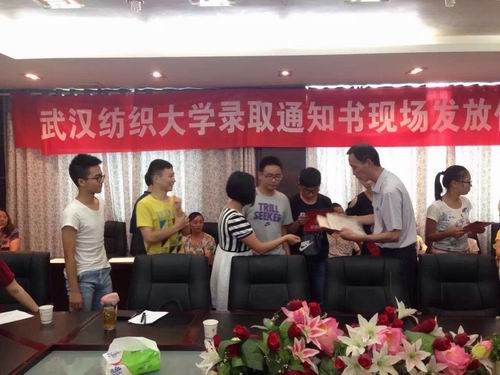 院党委书记陈利民为2015级新生颁发武汉纺织大学录取通知书