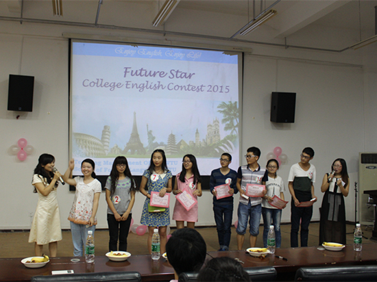 6月18日,在大学生活动中心103室,为期近两个月的2015年第一届“未来之星”大学英语竞赛迎来了巅峰决战。本次大学英语竞赛由外语学院主办,旨在提高全校学生对大学英语的兴趣,培养学生学习英语的积极性,促进学生学习课外知识的主动性。通过层层闯关,15名优秀学生从全体大一新生中脱颖而出,进入本次决赛。
