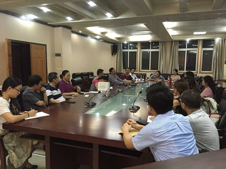 为提高国家社科基金项目申报质量和成功率,促进科研人员互相学习和交流,外国语学院分别于5月26日和28日邀请华中师范大学外国语学院博导罗良功教授和湘潭大学博导季水河教授来指导了2016年国家级社科项目申报。外国语学院副院长柯群胜和_汤富华教授分别主持了交流会,学院部分骨干教师参会。5月26日的交流会上,罗教授结合自己的科研经历和申报国家社科基金和其它重点课题的体会,提醒各位青年教师不要仅仅局限于做某个知识领域的专家,而是要“从专家到大家,既要专深,又要广博”。随后,他点评了学院32个国家社科基金和教育部人文社科项目的申报本子,与老师们就科研和项目申报分享了自己的经验和遇到的困难。
