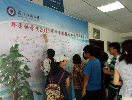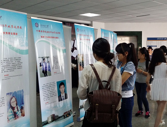 又是一年毕业季,校园里到处弥漫着离别的忧伤和深深的眷恋。5月21号上午,七教三楼大厅,外国语学院举办了精彩的“外国语学院2015毕业季成果展”,表达了学院领导和老师对毕业生们最真挚的祝福。“成果展”主要分为四大版块:优秀学生事迹、竞赛佳音、考研红榜、雏凤争鸣。此外,还展示了优秀毕业生的作业笔记。此次活动吸引了大批学生前来观看,并纷纷在海报上签名留念。