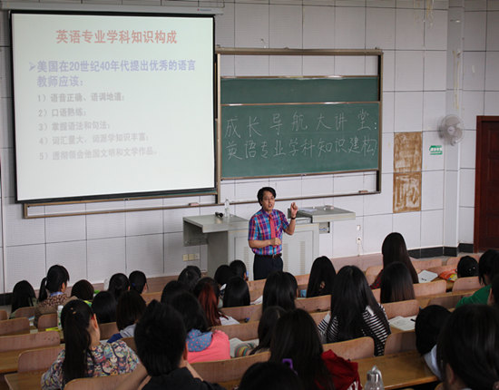 知识建构对学好专业有怎样的帮助?4月23日下午两点,“阳光学者”郭洋生博士应邀作客校团委主办、外国语学院承办的“成长导航”讲座,在7教T102教室为全校300多名学子带来了以“英语专业学科知识建构——从自身经历说起”的专题报告。