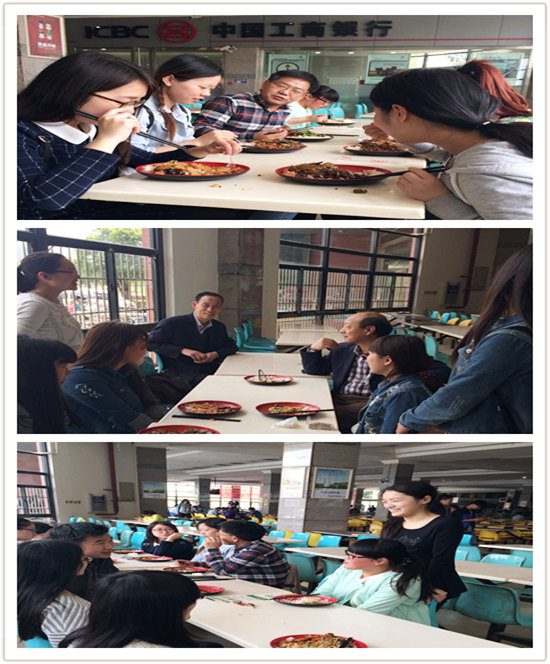 “一般在哪个食堂就餐?”“早晚自习学习效率怎么样?”“兼职做的是哪方面的工作?”4月22日中午,校党委副书记、纪委书记刘功成,校工会常务副主席杜新年,校招标办主任袁明刚,在外国语学院分党委书记陈利民、分党委副书记张鹏的陪同下,与各自结对宿舍的学生在阳光校区一食堂一楼进行了一次师生交流,并随后走访了学生公寓,为外语学院学生送去了最贴心的问候和关怀。