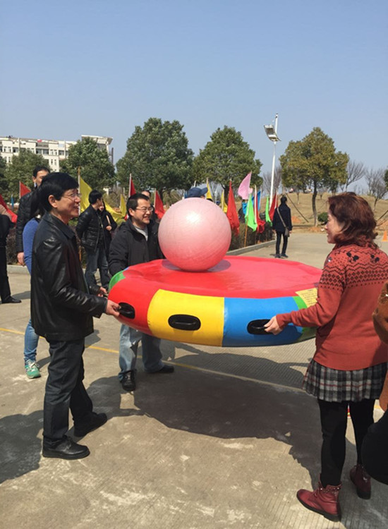 此次比赛分为个人项目和集体项目。个人项目为趣味接力,要求通过三关:摸石头过河——行进间跳绳——投毽球5个;集体项目为“众星捧月”。外国语学院的教职工们除了进行个人项目的争夺外,也组队参与了集体项目的角逐。集体项目中,学院领导陈书记亲自指挥,何院长、向院长等学院领导和办公室主任刘韦、刘方荣、曾令宙、李建鹏、戚永慧、姚范美、容桂香、蒲芳敏、沈璞配合默契,共同完成了“众星捧月”的活动。