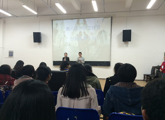 11月14日,我院外语文化节系列活动之创意配音大赛在我校大学生活动中心103教室隆重举行。本次活动邀请了我院吴志杰、李云霞和余演三位老师作为本次大赛评委。