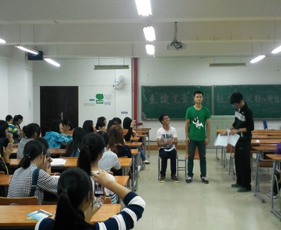 为了树立和弘扬社会主义核心价值观,用社会主义核心价值观引领德育工作,提高学生的思想道德水平,宣传教师在引导学生健康快乐成长中的感人事迹,从而促进教师师德教育和学校管理,不断丰富德育内涵。10月26日晚七点07-112教室,外国语学院各班展开了以“重读党章践行社会主义核心价值观”为主题的班会活动,向学生们发出了学习和践行社会主义核心价值观的总动员令,积极响应了学校“争做‘四有’教师•‘十大美语、十条禁语’”的征集活动。
