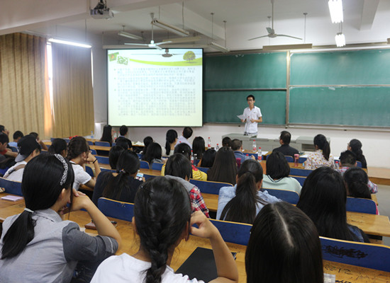 向荣副院长则从英语专业的教学入手,深刻剖析了本专业的就业优势和发展潜力,全面介绍了学院近年来的专业师资力量,以及往届毕业生就业情况,让2014届的新生们更清楚今后可以在怎样的平台有的放矢地展示自我。