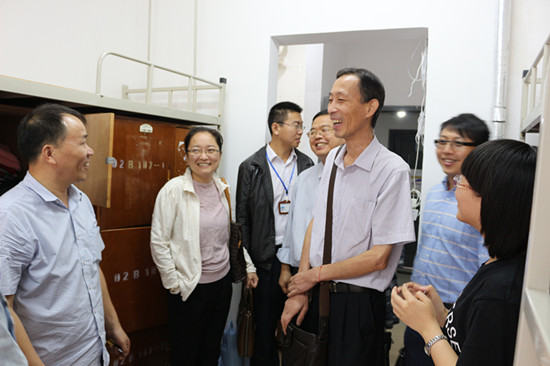 9月13日上午,外国语学院分党委书记陈利民、副书记张鹏、教授代表韩征顺等同志走访了新生宿舍,看望2014级新生,了解他们报到后的生活情况。