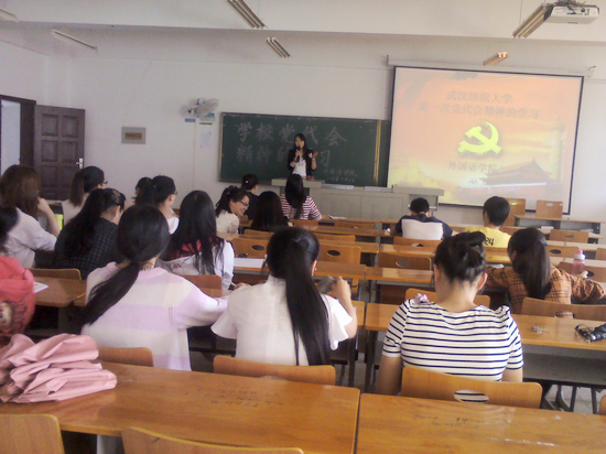 5月8日下午两点,外国语学院学生党支部和外经贸学院外语系学生党支部在07-202召开了以“学习贯彻学校第一次党代会精神”为主题的民主生活会。会议由外国语学院明珠老师主持。外国语学院第一党支部和第二党支部全体党员和预备党员参加了此次会议。