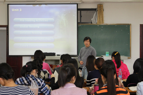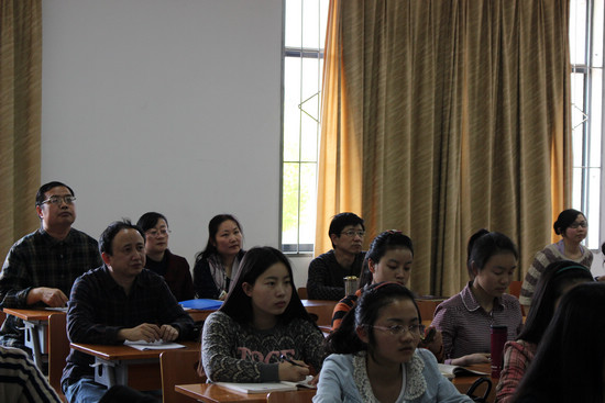 3月27日下午,外国语学院英语系全体教师在7栋106、107教室听课,听课的对象不是年轻教师,而是有着丰富教学经验的高级职称教师。由此,“向教授学习”系列公开课展示活动正式启动。与以往的听课活动不同,本次活动的主要目的是观摩学习教授、副教授们的授课经验,从而带动学院全体教师认真揣摩授课技巧,提高授课水平。