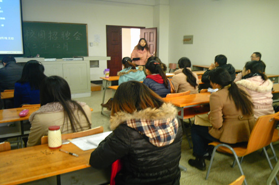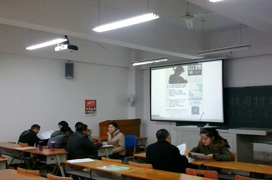 外语学院领导班子首先在会议室与六家企业的老总进行了会谈,双方就我校就业指导工作和毕业生基本情况和深圳市就业形势、企业用人现状做了交流。随后,在学院分党委副书记卫冬妹和引荐教师胡远兵的陪同下,六位企业老总在招聘教室与毕业生进行现场企业宣讲、简历筛选、中英文面试等招聘工作。同一地区同类别企业组团招聘信息面大,就业岗位广,且具有团队作战的优势,这些特点都吸引了外语专业等毕业生前来应聘,我校毕业生的优秀表现给企业负责人留下深刻印象,得到他们的一致好评。