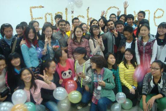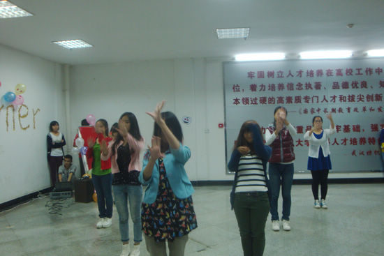 活动伊始,由外国语学院的学子带来Dr.Jolin的开场舞,在极富感染性的音乐和舞蹈的带动下,现场的气氛顿时达到了沸点,大家都随着舞蹈节奏跳动起来。随后,主持人邀请来自牙买加的外教凯琳给大家介绍了万圣节的由来以及当地的习俗,凯琳介绍道,万圣节的主要活动就是“不给糖就捣蛋”,即小孩晚上会穿上化妆服,戴上面具,挨家挨户收集榶果,而且每家每户都会装饰上南瓜灯式样的饰品。随后,同学们饶有兴趣地围绕着万圣节主题的鬼怪,诸如僵尸、鬼魂、女巫、恶魔等进行了热烈的交流,留学生们也讲述着他们的国家举办万圣节的情况。活动尾声,外教、留学生、同学们一起玩了“抢凳子”游戏,大家为能抢到一个凳子而“费尽心机”,游戏进行得热火朝天,每个优胜者都为能得到游戏的棒棒糖奖品而兴奋不已。两个半小时一转眼就过去,意犹未尽的同学们在合影留念的间隙还在询问下次英语角的活动……