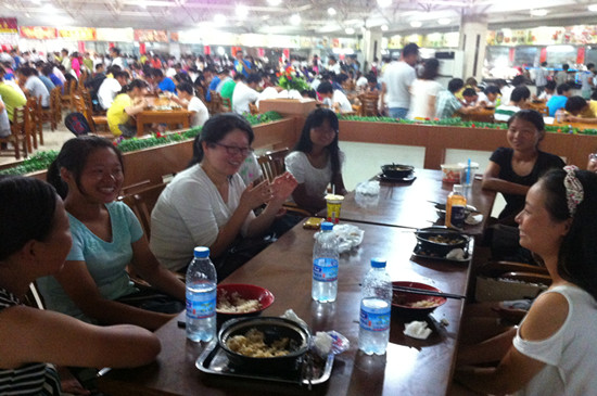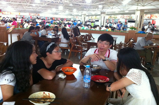 初次会餐,新生们虽略显羞涩,但是看到老师们的亲切态度和细心的询问,也渐渐的大胆起来。在欢快的进餐中,她们开始与老师敞开心扉,畅所欲言,展现出一种师生同乐的画面,其乐融融。何畏院长针对专业学习对同学们进行指导,他鼓励大家多阅读英语书籍,努力学好自己专业,做一个品学兼优的大学生。潘寅老师为新生介绍了大学生活中所需要注意的几点问题,建议同学们要充分利用大学里丰富的资源,如图书馆、自主学习室、师资等软硬件条件,充分学习,全面提高。面对新生们踊跃提出大学生活里的一系列问题,陈国新书记耐心倾听并为新生们一一解答,当听到新生对校园环境、师生面貌、专业学习等方面予以肯定时,陈书记也感到非常欣慰。还有学院柯群胜副院长、卫冬妹副书记,新生班主任韩征顺教授、刘方荣老师,英语系主任罗绮伦、钱茂华老师等,纷纷与学生围坐一起,淳淳教导。老师们关心并询问新生刚入学后能否适应新的环境、对学校和学院印象如何、有什么意见和建议、对专业学习感受如何等等,对同学提出的问题一一解答。