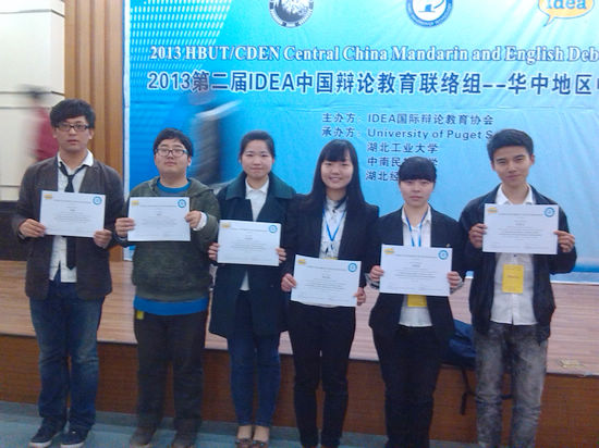 3月22-24日,由国际辩论教育协会(IDEA)主办,湖北工业大学和美国University of Puget Sound联合承办的“第二届IDEA-HBUT华中地区中英文辩论赛”在湖北武汉举行。我校外国语学院华妤琪、刘茜茜等6名学生组成的代表队一路披荆斩棘成功进军最后的半决赛,经过激烈的角逐,最终荣获英文辩论赛二等奖的优异成绩。