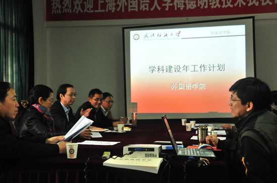 黄校长指出,外语学科建设要深化教学研究,突破难关引进人才,在小语种建设方面要做好市场调研,保持学科建设的持续发展。