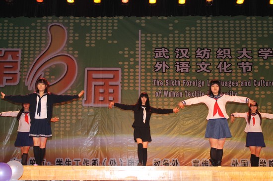 “悦在纺大、师生同乐”之缤纷外语季晚会拉开序幕。外国语学院日语教师陈星博士与学习团队一起随日语秀出活力。外经贸学院选送的日本舞《恋爱サーキュレーション(恋爱循环)》与传媒学院选送的日文歌曲《金魚花火(金鱼花火)》,展现了日语文化的魅力。