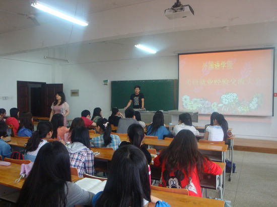 为让低年级同学对未来的人生有个明确的把握,对如何选择以后的道路做个正确的认识。5月24日下午,外国语学院在07-203开展了毕业生考研就业经验交流大会。外国语学院分党委副书记卫冬妹、辅导员常利利老师、8名已考上知名大学研究生或在企业正式工作的08级学生及外国语09级全体学生共同参与了此次大会,交流考研或找工作的经验。