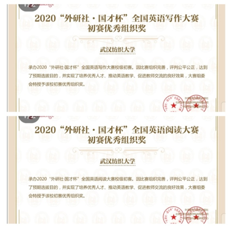金秋十月,2020“Uchallenge 大学生英语挑战赛”以线上加线下的模式依次在武汉纺织大学开展。赛事包括“外研社·国才杯”全国英语演讲、写作、阅读三大赛事,是大学生呈现风采、实现自我的广阔舞台,也是外语教育领域体现智慧、展现创新的沟通平台。大赛以培养具有国际视野、创新意识、家国情怀、未来精神的国际化人才为目标,引导大学生坚定文化自信、提升综合素养,推动话语表达与时代精神同向同进。
