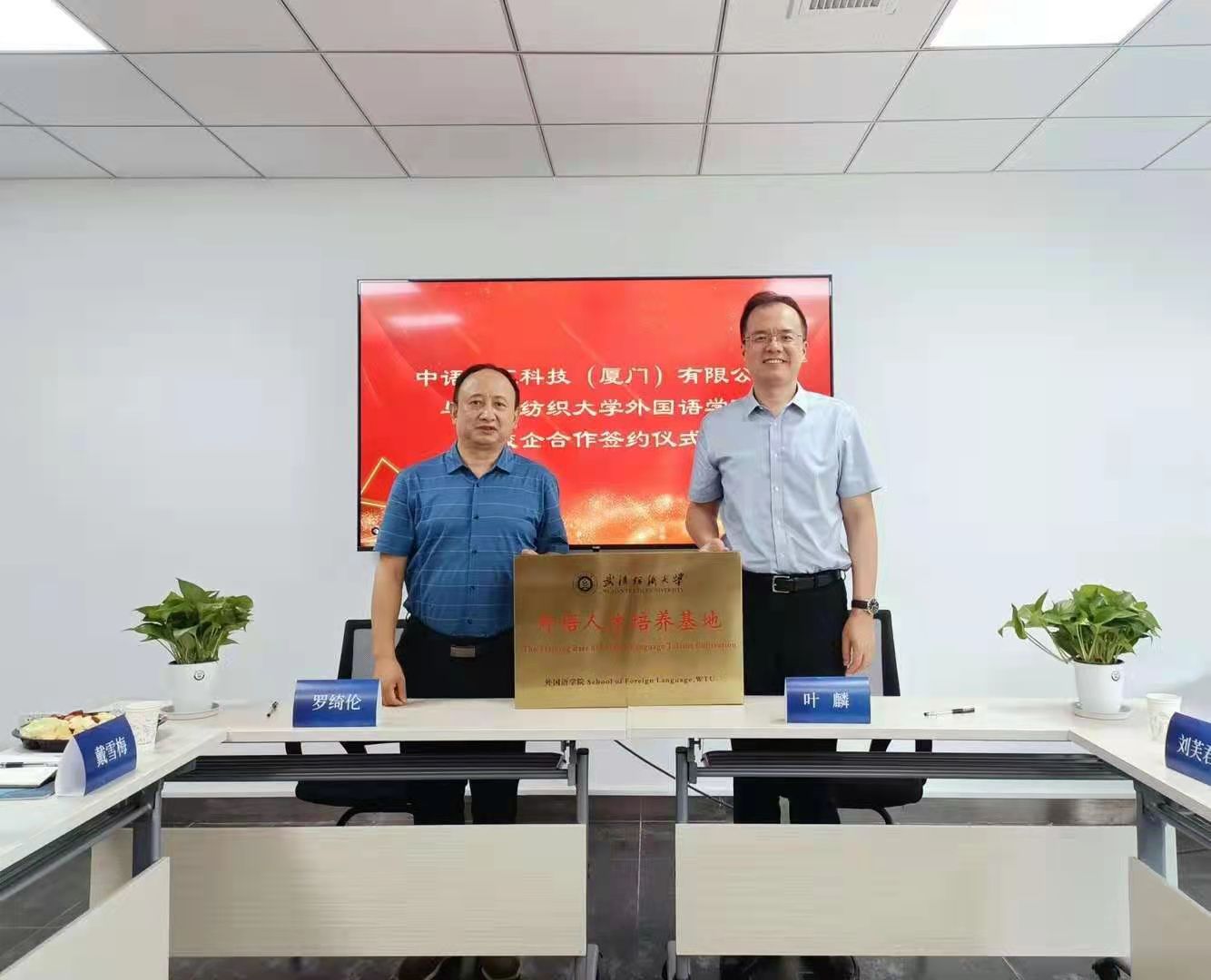 在厦门中语智汇科技有限公司举行的校企座谈会上,罗绮伦详细介绍了我院的办学概况和专业建设情况,并和对方主要负责人就新文科建设背景下外语人才培养模式、外语专业产教融合协调育人机制及一流课程建设合作模式进行了交流和探讨,并举行了校外实习基地签约仪式。