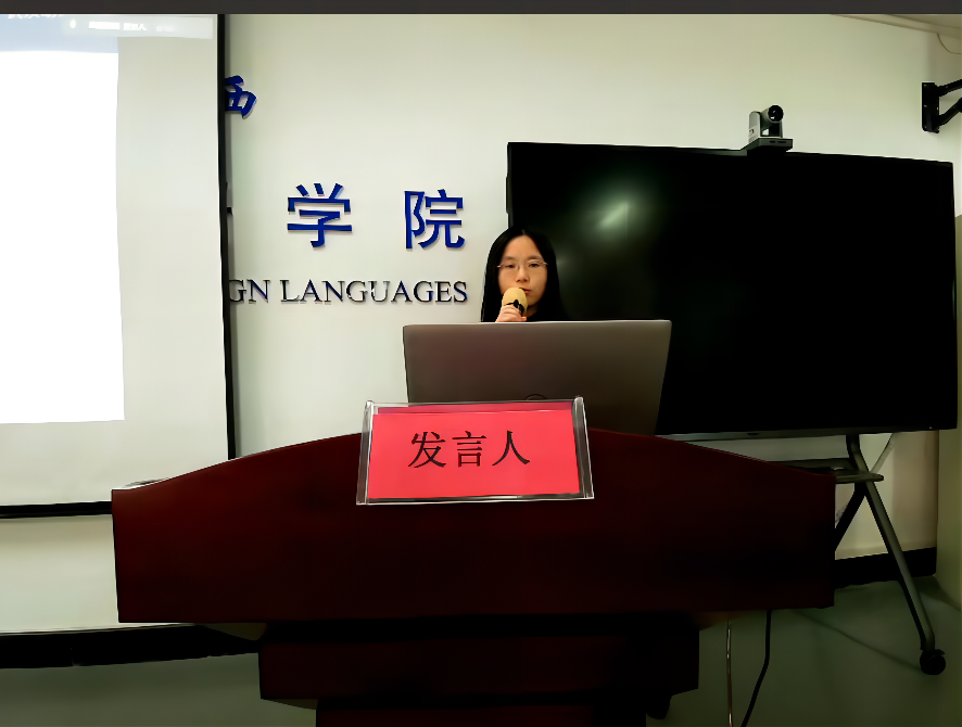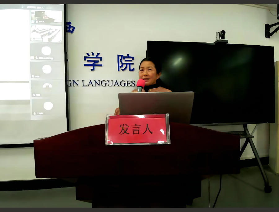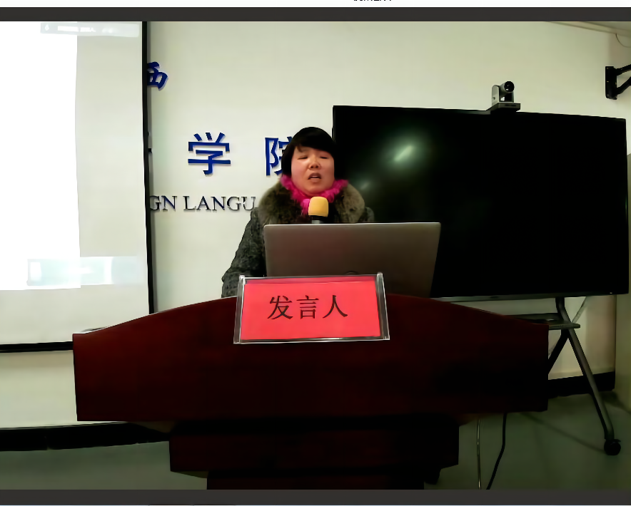 外国语学院申报校内特聘教授的刘珊副教授和刘慧副教授以PPT的形式,从目前科研工作现状、存在的困难及瓶颈、下一步目标及打算三个方面进行了业绩述职汇报。