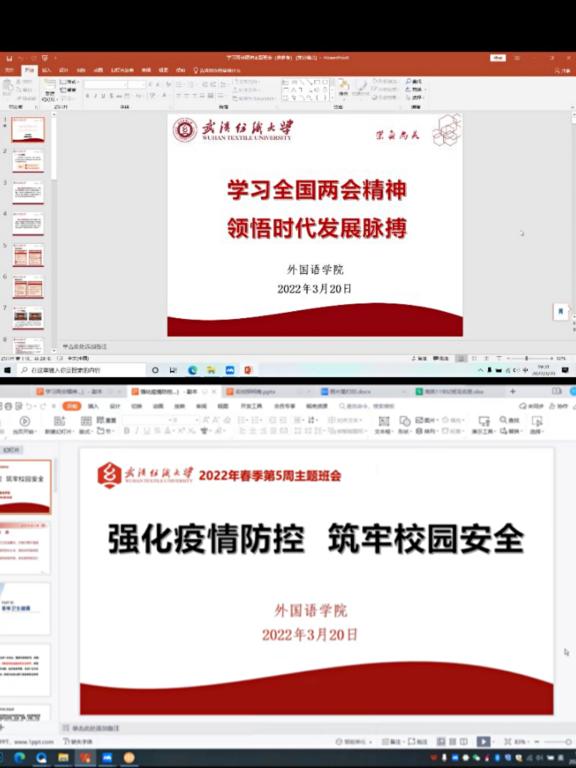 为促进学生学习两会精神,增强校园疫情防控意识。3月20日,外国语学院组织全体班主任对各班开展“学习全国两会精神,领悟时代发展脉搏”、“强化疫情防控,筑牢校园安全”主题班会,同学们围绕会议主题展开了热烈讨论。