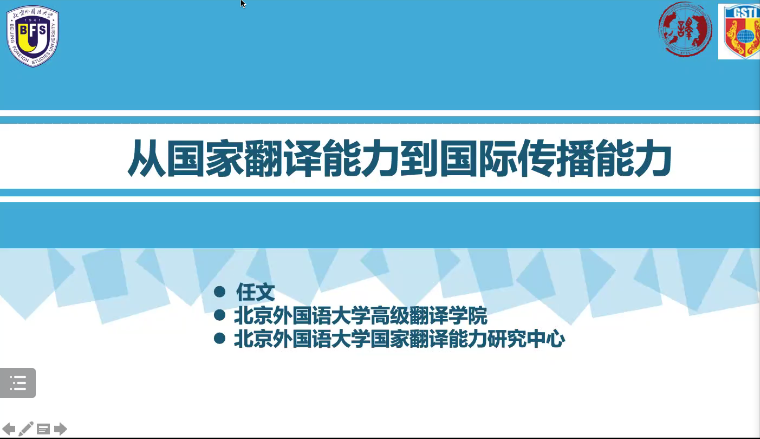 正值开学季,8月22日晚上7点,北京外国语大学高级翻译学院院长,博士生导师任文教授应外国语学院之邀,在云端作了题为“从国家翻译能力到国际传播能力”的学术讲座。此次讲座是外国语学院暑期科研工作坊系列讲座的第二期,也是外国语学院为迎接新的学期,提升教师们的学术研究水平的重要举措。讲座由院长谭燕保教授主持,外国语学院全体教师在线参加了此次讲座。