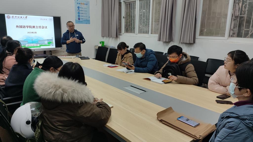 为持续做好学院班主任工作及本科生导师制改革推进,充分调动班主任的工作积极性,2月16日,外国语学院召开全体班主任会议,院长谭燕保、副院长罗绮伦、学院全体班主任及辅导员参加会议,会议由学院党委副书记彭阳慈航主持。