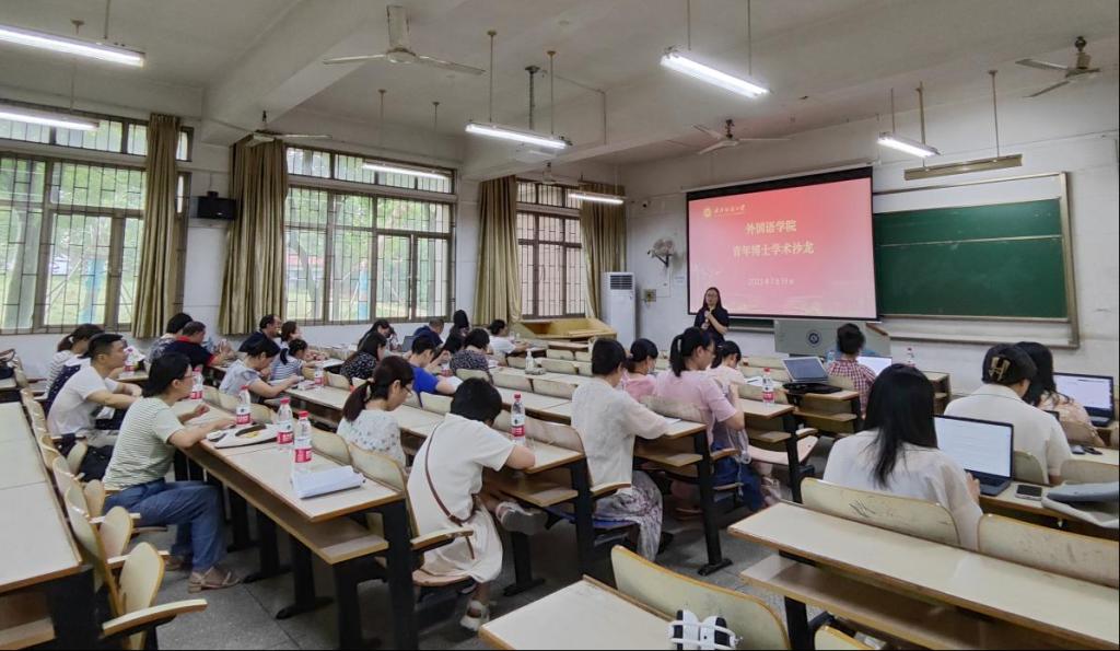 7月19日上午, 外国语学院在南湖校区05-110教室成功举办了青年博士学术沙龙,学院近两年引进的5位博士针对自己的研究方向进行了学术成果汇报。部分老师和学院班子成员参加并聆听了汇报,学术沙龙由副院长刘方荣主持。