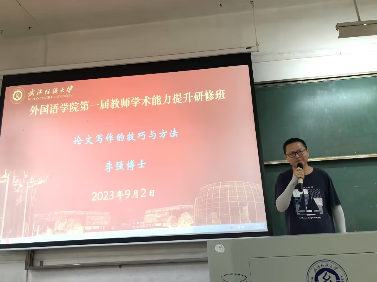 9月2日上午,在南湖校区综合楼110教室,外国语学院第一届教师学术能力提升研修班第二时段第二场如约而至,学校期刊社副编审李强博士带来题为“论文写作的技巧和方法”的讲座。讲座由学院副院长刘方荣主持。