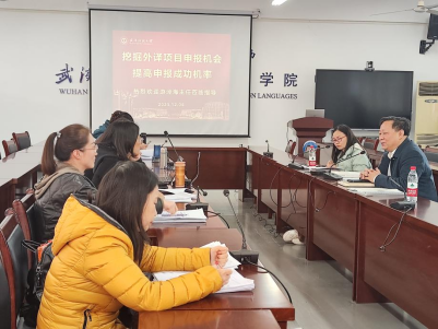 12月6日下午,外国语学院举办了国家社科基金中华学术外译项目申报指导会,特邀武汉大学出版社总编室和国际版权部游径海主任做申报指导。外国语学院院长谭燕保教授、全体MTI教师、小语种老师及对中华学术外译感兴趣的老师共同聆听了此次讲座。会议由学院副院长刘方荣主持。