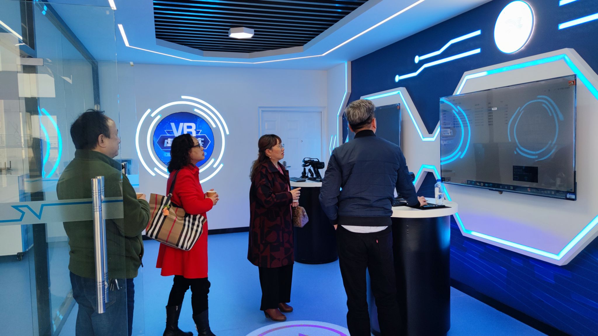 调研期间,谭燕保一行参观了武汉轻工大学外国语学院智慧外语虚拟仿真实训中心。