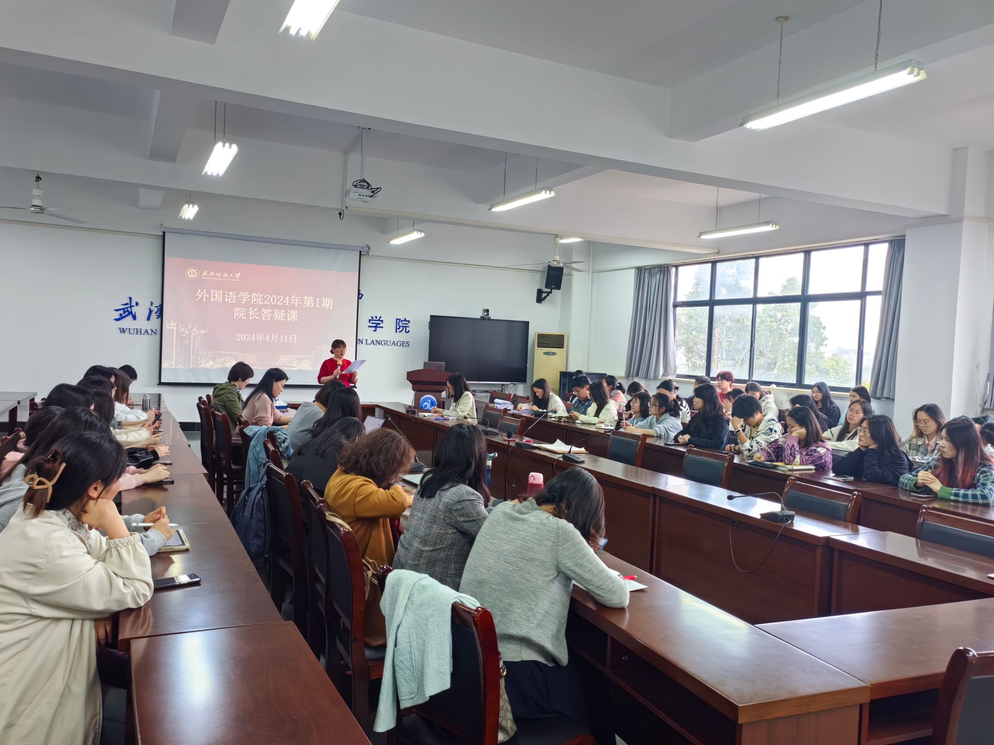 4月11日下午,外国语学院院长谭燕保教授在崇文楼303会议室为21级本科生讲授“院长答疑课”,副院长罗绮伦、刘方荣,本科生导师、辅导员和全体21级学生参加。