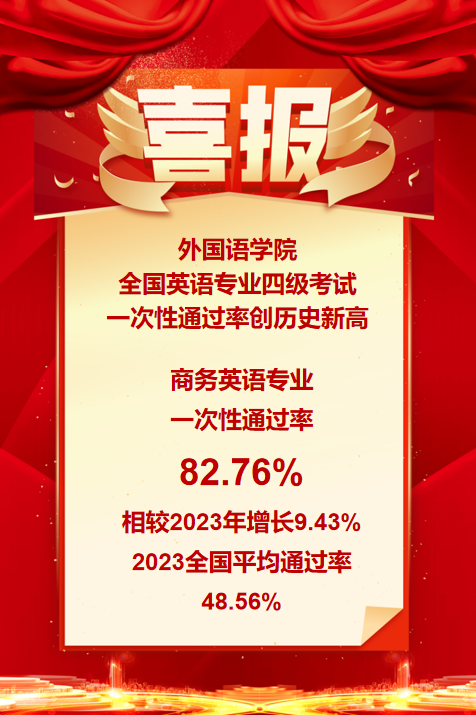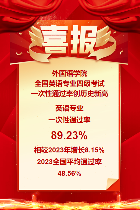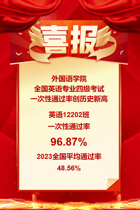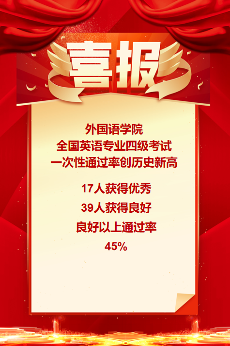 喜报!外国语学院全国英语专业四级考试一次性通过率创历史新高