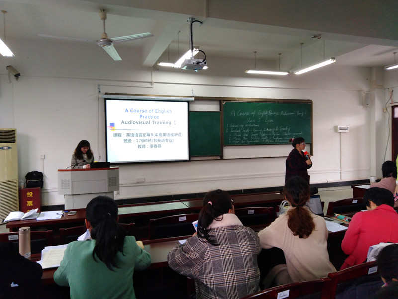 为提高大学英语课堂教学质量,促进学院教师开展教学交流,外国语学院于4月11日下午在04-303教室开展了课堂教学系列观摩课活动。本次教学观摩活动由外国语学院院长谭燕保教授主持,主讲教师为大英第一教研室廖春燕老师,学院全体教师参与观摩和评课交流。