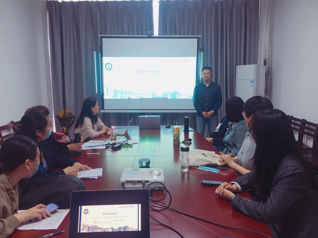 10月14日,英语系在04-313会议室举行了本学期第一次观摩课主题的教学分享会。主讲人是年轻教师曹福然博士,他介绍了本学期承担的两门课程——英语专业本科课程《英语口语I》和翻译硕士研究生课程《口译理论与技巧》的教学实践情况和不同阶段的教学反思,引出了以本硕课程的多维差异性为内核,从课堂内容、课程思政、教学组织等七个方面进行本硕教学充分对比研究的讨论。他精彩的分享体现了年轻博士教师在教学中的新思维、深思考、宽思路,受到与会教师的高度认可。