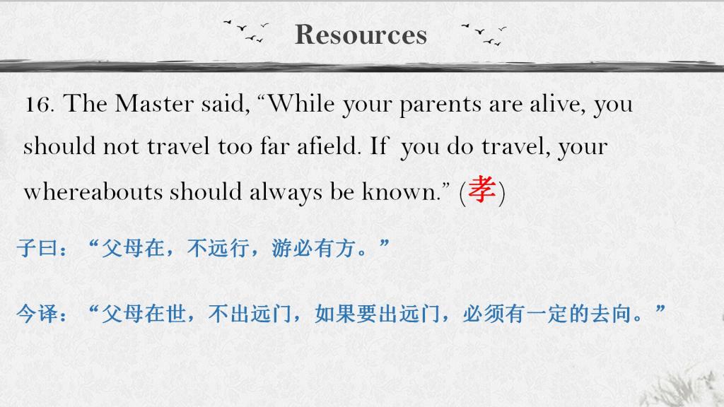 在“英语畅谈中国文化”的第一讲----孔子的智慧中,我们了解了孔子的核心思想"孝-仁-礼"。孔子认为,人间的所有美好和谐皆始于孝。所谓“悌孝也者,其为仁之本矣”。在课堂上沈训姣老师就孝道Filial piety这个话题与学生展开了讨论。