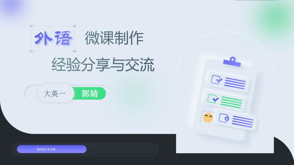 本次教学观摩活动的主讲老师是郭婧老师,曾作为外语微课团队负责人带领学院微课团队在历年的全国外语微课大赛中多次获得省级乃至国家级奖项。她通过对过去微课制作过程的梳理和总结,针对此次教学观摩活动准备了一堂干货满满的微课经验分享与交流课。