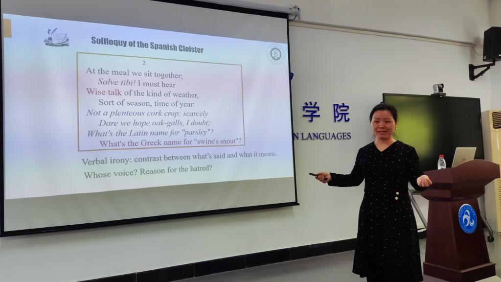 陈老师全程英文教学,英语口语表达流利,对诗歌分析细致入微而又有理论深度,体现了陈老师扎实的英语语言基本功和深厚的文学理论功底。