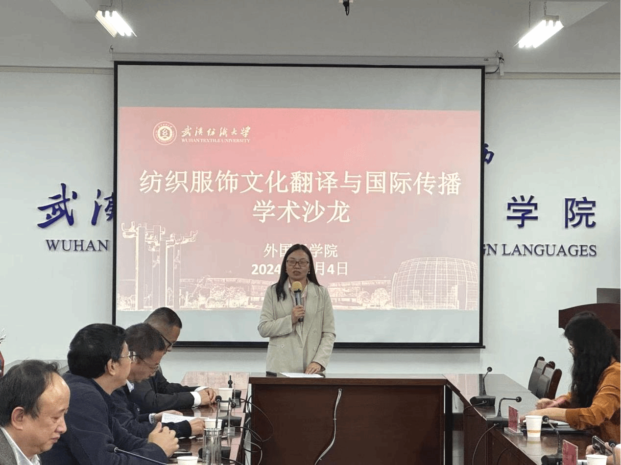 11月4日下午,外国语学院在崇文楼04-303成功举办以“纺织服饰文化翻译与国际传播”为主题的学术沙龙。本次沙龙特别邀请浙江理工大学杂志社副社长经渊、学术期刊《丝绸》副主编杨一舟、SILK编辑余晓娜,以及我校传媒学院副院长马庆、期刊社副编审李强作主旨发言。外国语学院党委书记胡中原、各系部教师和研究生、本科生参加了此次沙龙。活动由外国语学院副院长罗绮伦和刘方荣主持。