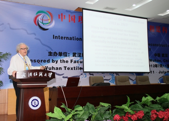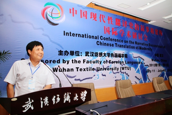 年7月12日,由武汉纺织大学外国语学院主办的“中国现代性翻译史的叙事和建构”国际研讨会在武汉纺织大学南湖校区T201学术报告厅隆重举行。武汉纺织大学校长韦一良出席开幕式并致欢迎辞。湖北省炎黄文化研究会秘书长黄朝霞发来贺电、祝贺大会顺利召开。大会邀请来自澳大利亚、加拿大、美国、爱尔兰、香港、北京、陕西、山东、南京、武汉等国内外翻译、英语语言文学及汉学界的近百位专家与学者齐聚一堂,作为正式代表出席了大会。大会的紧张筹备,得到了学校学科建设办公室、科技处、国际合作交流处等职能部门的大力支持。开幕式由学校外国语学院院长何畏主持。