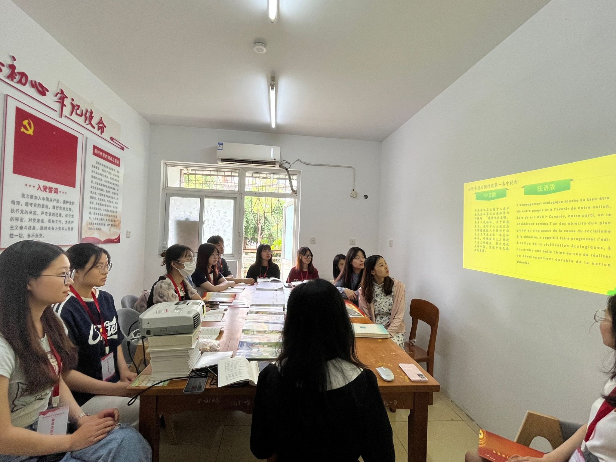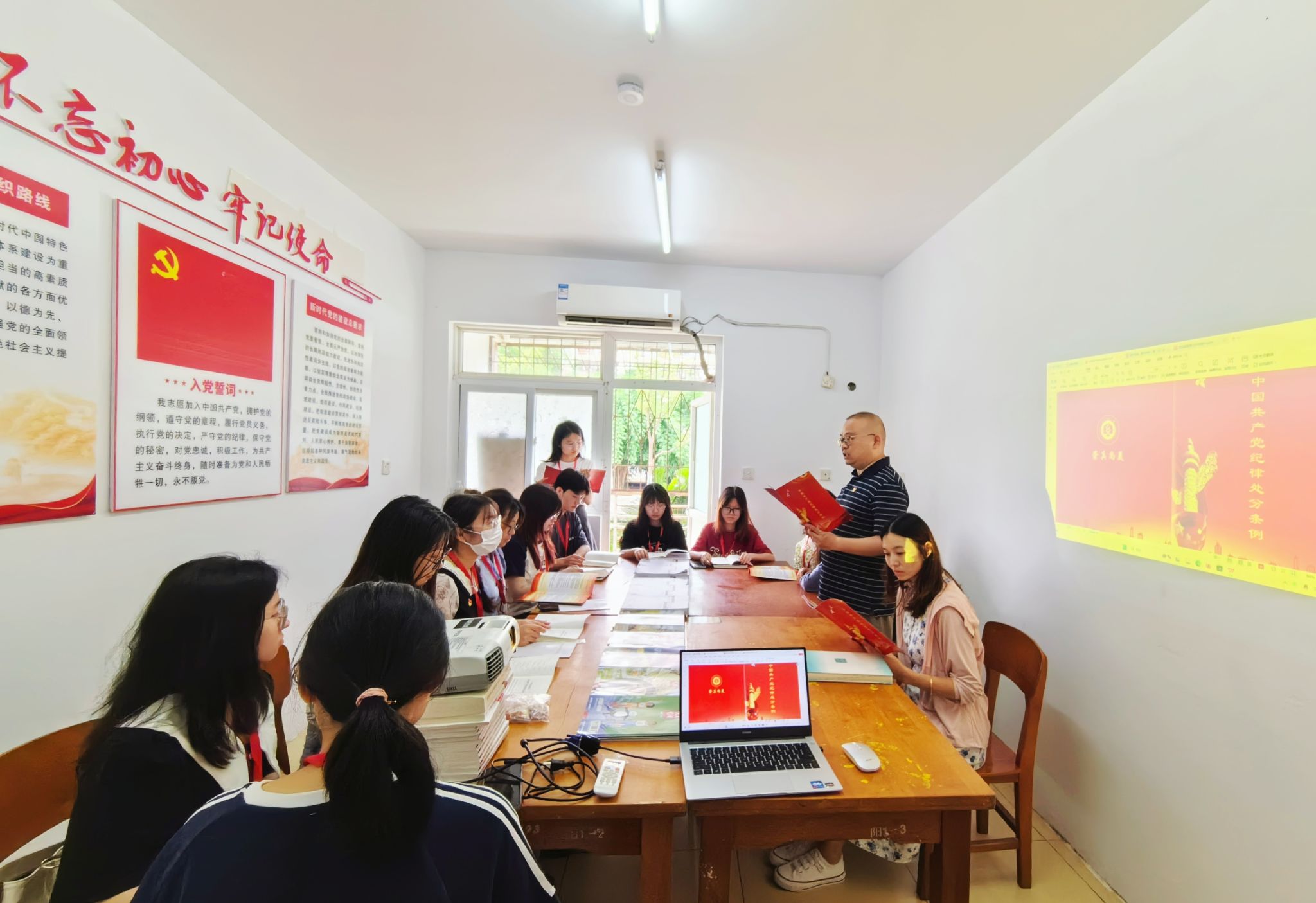 为深入学习贯彻《中国共产党纪律处分条例》,扎实开展党纪学习教育,落实“学生党员在身边”实践活动,提升党性修养与文化底蕴,营造浓厚的学习交流氛围。6月7日,读“习”有声学生成长服务站龚全珍工作室学业互助岗(外国语学院)开展学生党员读书会活动,来自三个学院的师生党员参加此次读书分享活动。