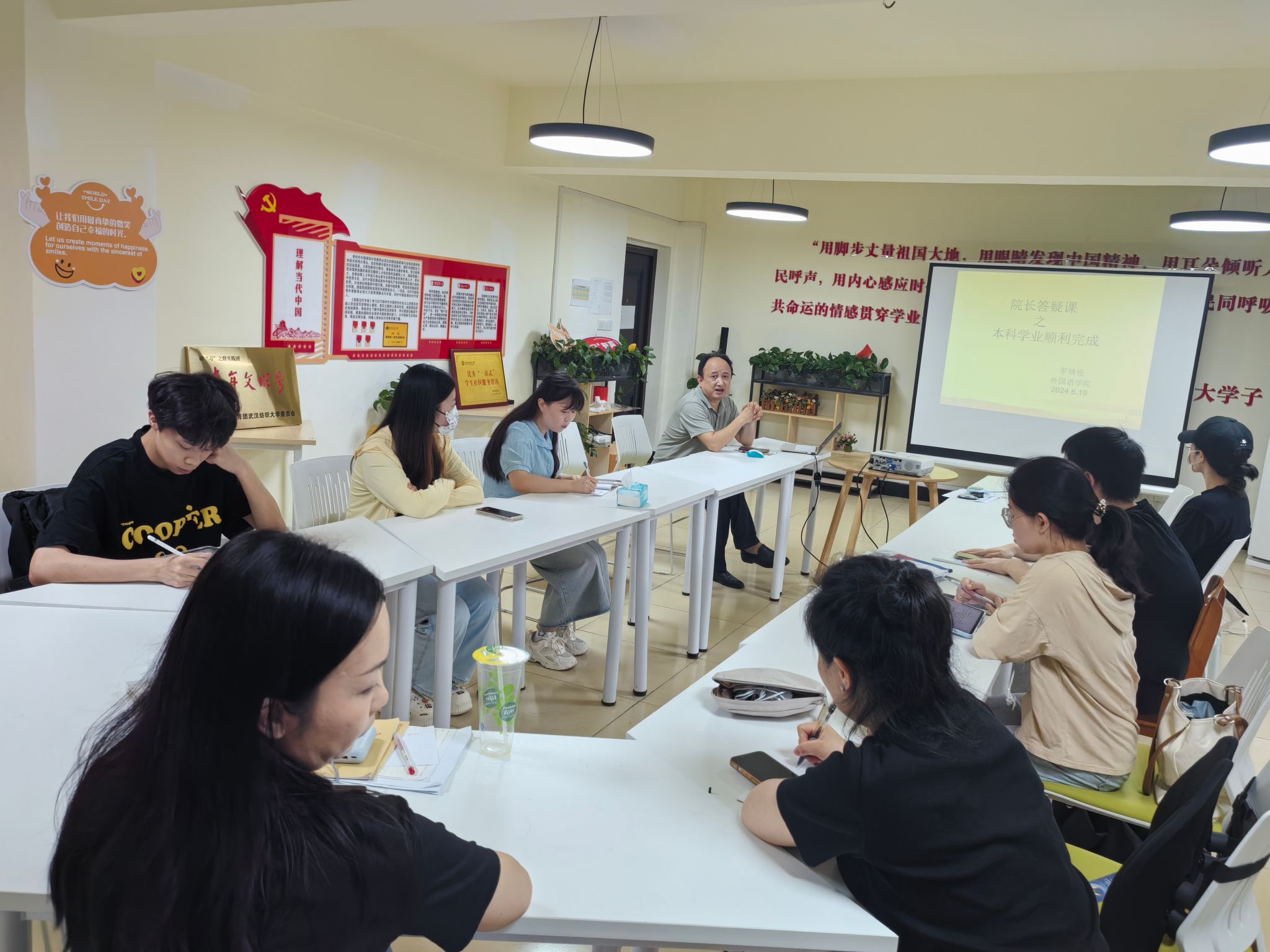为促进准大四毕业生尽早开展学分清查,顺利完成本科学业任务,6月19日下午,外国语学院在“读习有声”学生成长服务站开展本科生学业完成情况院长答疑课。外国语学院副院长罗绮伦、英语系主任王越、商务英语系主任吴志杰以及2021级学生代表参加此次座谈。